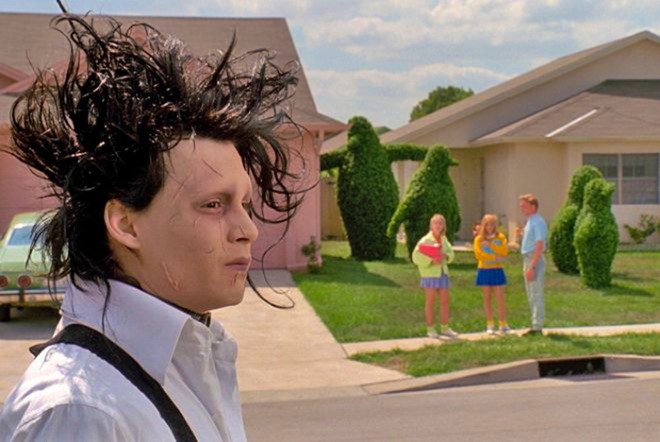 창백한 얼굴에 부스스한 머리, 그리고 번쩍이는 가위 손을 가진 에드워드(조니 뎁). 그는 외모만 보면 괴물 같지만, 그 누구보다 순수한 영혼을 가졌습니다. 반면, 아름답고 평화로워 보이는 마을 사람들은 호기심으로 에드워드를 소비하다가, 수틀리면 마녀사냥을 하는 잔혹한 이면을 보여주죠.