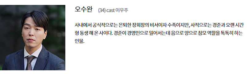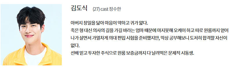 5년 전 각막이식을 받고 시력과 함께 새로운 삶을 시작한 TS 리테일가의 장손. 이중적인 계모 윤희 때문에 생긴 트라우마로 좀처럼 감정을 얼굴에 드러내지 않는 냉정한 성격을 가지게 됐다. 남에게 민폐를 주는 행동을 싫어하기 때문에 남한테 민폐를 주는 사람도 제일 싫어한다. 때문에, 상가 화장실에서 난데없이 자신에게 물세례를 날린 영이가 딱! 자신이 제일 싫어하는 인간 유형이다. 그런데 왜 자꾸 눈길이 가고 신경이 쓰이는 걸까?